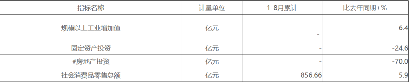 2025年1-8月,金昌市实现限额以上社会消费品零售额24.82亿元,同比下降0.6%。