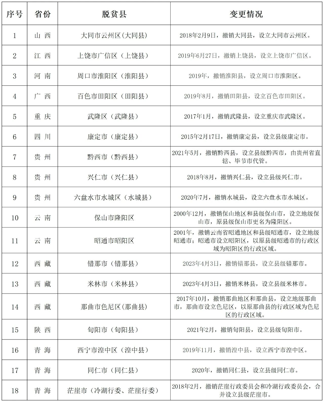 脱贫县行政区划变更情况